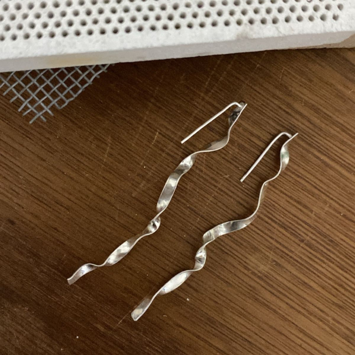O Brinco Fita é uma joia autoral feita 100% à mão em prata 950, com acabamento e design delicado.