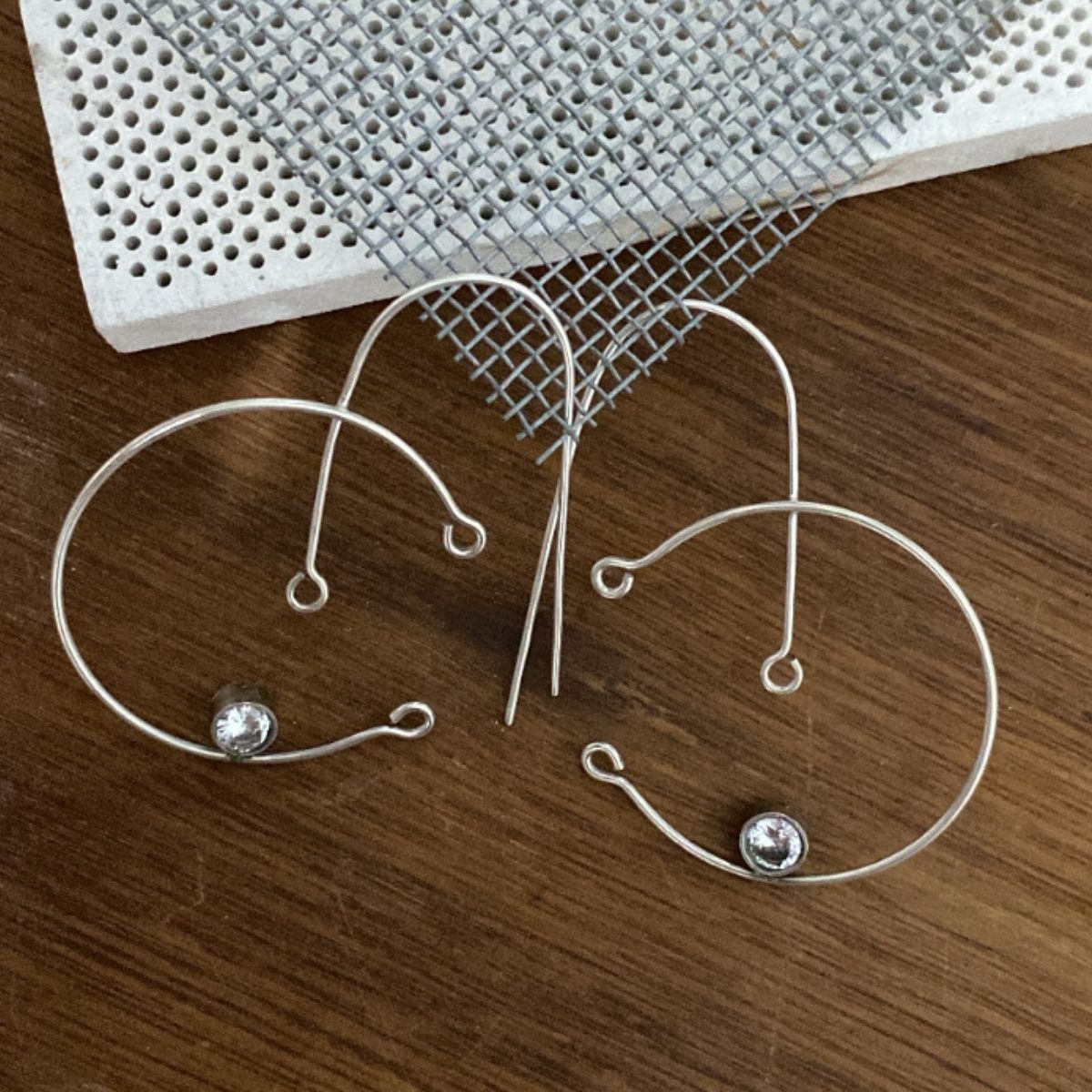 O Brinco Meiocírculos é uma joia autoral feita totalmente à mão em prata 950, com um design ousado e criativo que chama atenção pela leveza e fluidez das formas. A composição é formada por vários círculos interligados, criando uma estética dinâmica e moderna. No centro do design, uma zircônia redonda cravada adiciona um toque de brilho e sofisticação à peça.